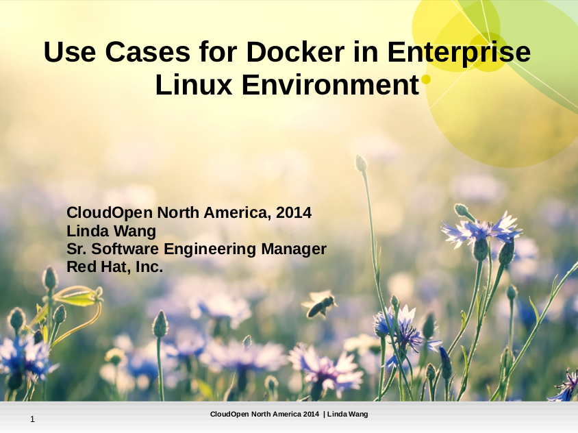 Abstract: Linux Container as a feature has been available for hobbyist usage for a while now; however, not only 'til recently where Docker, as a container deployment technolog, help built an open source community and gain wide adoption, has provided an easy way to deploy Linux Containers on the enterprise Linux. This talk will introduce and cover the various use cases and deployment models that are available and suited for enterprise devops work environment.