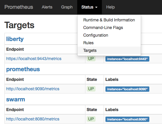 As a first step select Status -> Targets from the menu and make check that both servers are marked as UP.