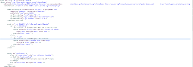 <route id="rest1-route"> <from id="restone" uri="direct:rest1"/> <setBody id="route-setBody1"> <simple>bean:CustomerList?method=get(0)</simple> </setBody> </route> <route id="rest2-route"> <from id="resttwo" uri="direct:rest2"/> <log id="input-log" message=">>> ${body}"/> <setBody id="route-setBody2"> <simple>Customer created</simple> </setBody> </route>