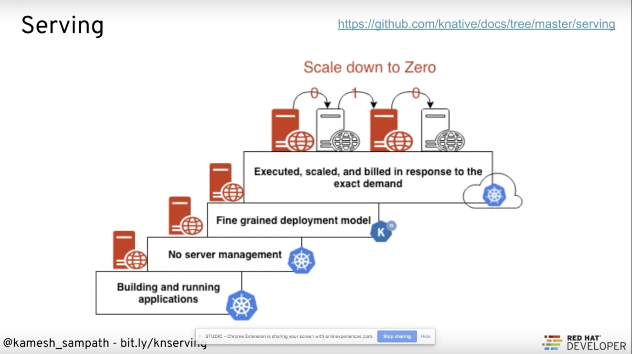 - The building blocks of Knative—such as serving, building and eventing ecosystems.