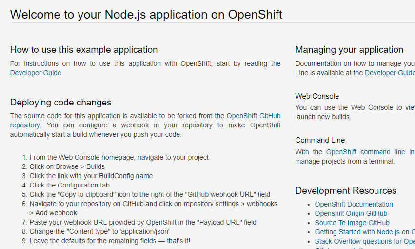 Note: This build example is using Node.js, and I did all the work using a Windows PC running PowerShell. Open source and platform independent—that's the beauty of all this. That is, the oc command works everywhere. Also; this example relies heavily on the OpenShift examples GitHub page.
