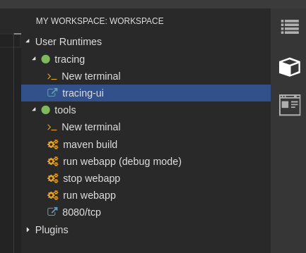 In the same tree, select the User Runtimes/tracing option tracing-ui, which launches the Jaeger UI in a separate browser tab as shown in Figure 5: