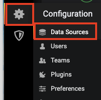 - Add Prometheus as a data source. Go to the settings icon and select Data Sources, and then Prometheus, as shown in Figure 5: