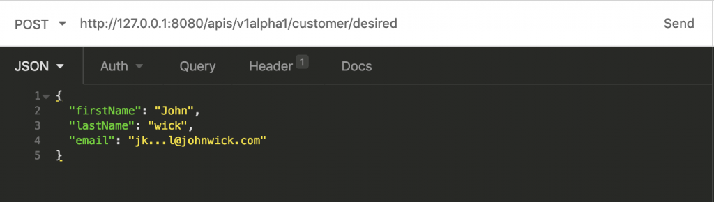 Now, let’s try to update the state of our Customer with the desired state using the POST method and JSON data in Figure 5:
