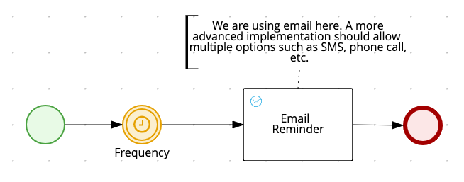 Next, you need the timer, which causes the email reminder to be executed at the frequency defined in the reminderFrequency attribute of the Task object, as shown in Figure 4.