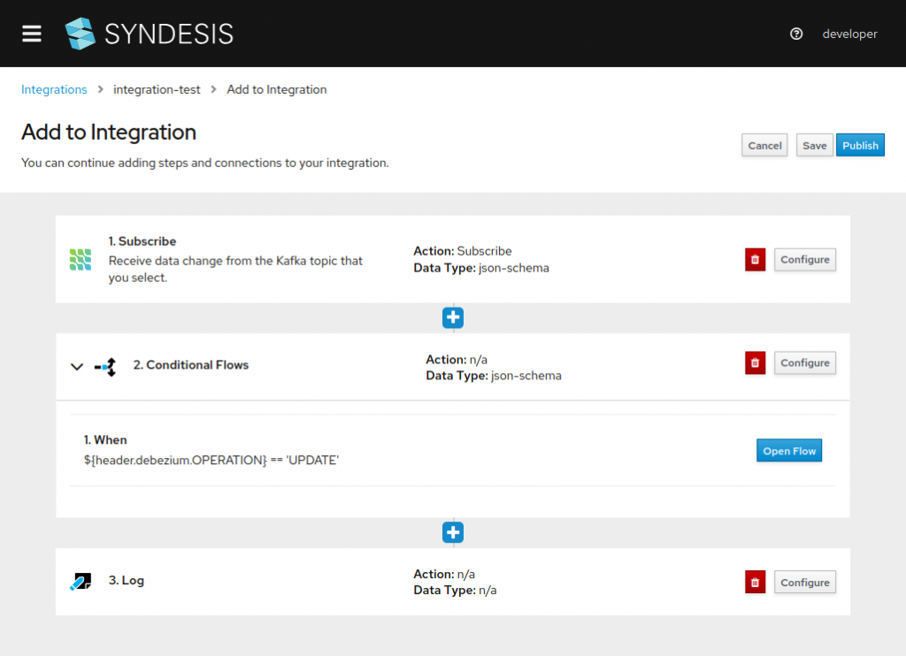 This article is a quick dive into orchestrating microservices without writing any code. We will use Syndesis (an open source integration platform) as our orchestration platform. Note that the examples assume that you are familiar with Debezium and Kafka.