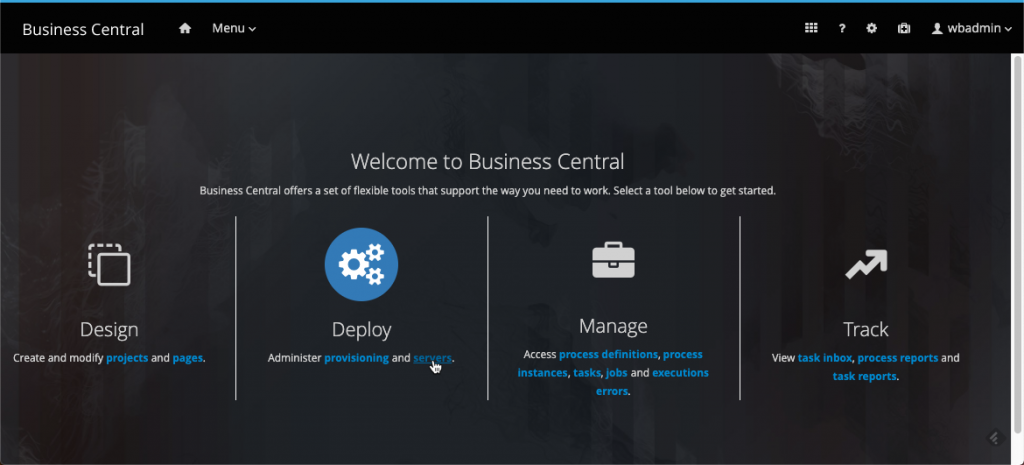 Deploy the PHM-Processes project in the same manner. Then, go to Business Central's, find the Deploy section, and click servers (Figure 6).