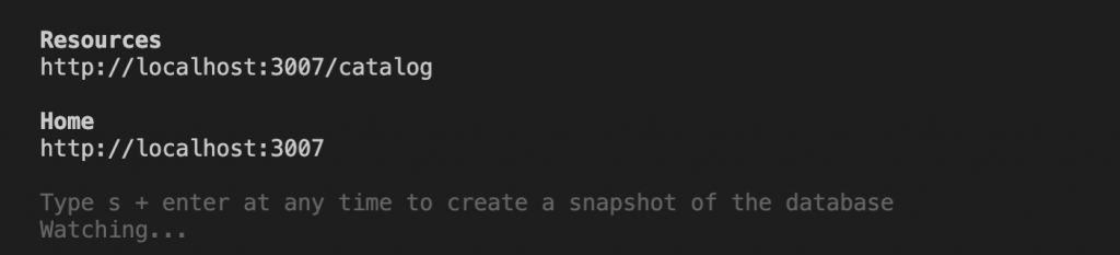 Open a terminal for the back end and run npm start. You should see the back end provide information about the collections it is serving, as shown in Figure 1.