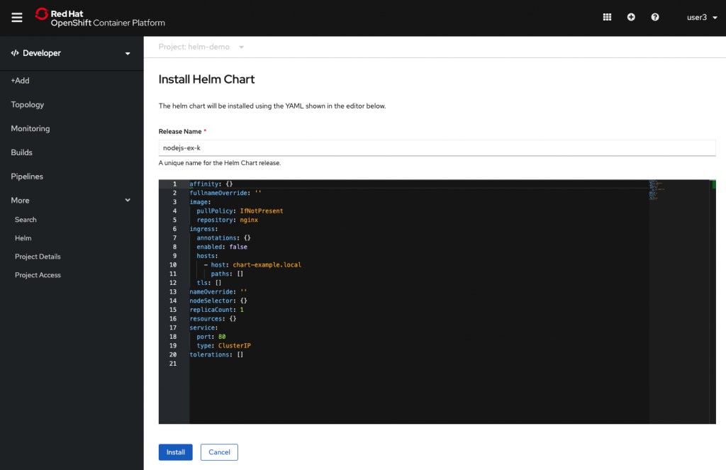 Installing a Helm Chart in OpenShift