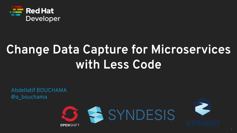 Want to smoothly modernize your legacy and monolithic applications to microservices or cloud-native without writing any code? Through this demonstration, we show you how to achieve the following change data capture scenario between two microservices on Red Hat OpenShift using the combination of Syndesis, Strimzi, and Debezium.
