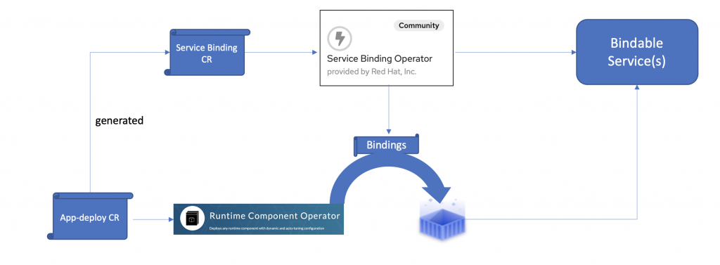 Runtime Component Operator's role is to detect (automatically or via a reference) a ServiceBindingRequest that links to one of its deployed microservices. It will then inject or mount the corresponding information.