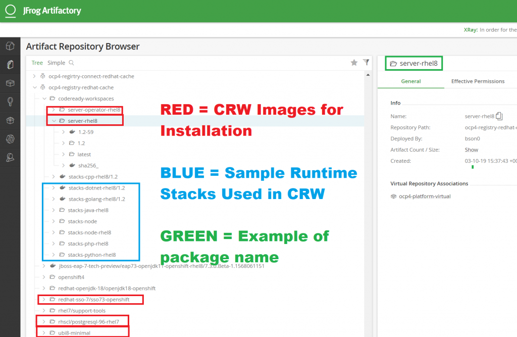 Once you pull the images from the Red Hat Registry, verify that they are stored in your private registry. Figure 4 is a screenshot of my Artifactory registry, where I stored the images required for my CodeReady Workspaces installation.