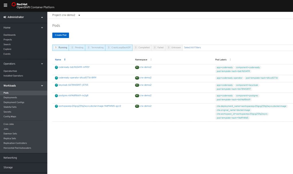 Step 7: Check your pods and deploy CodeReady Workspaces