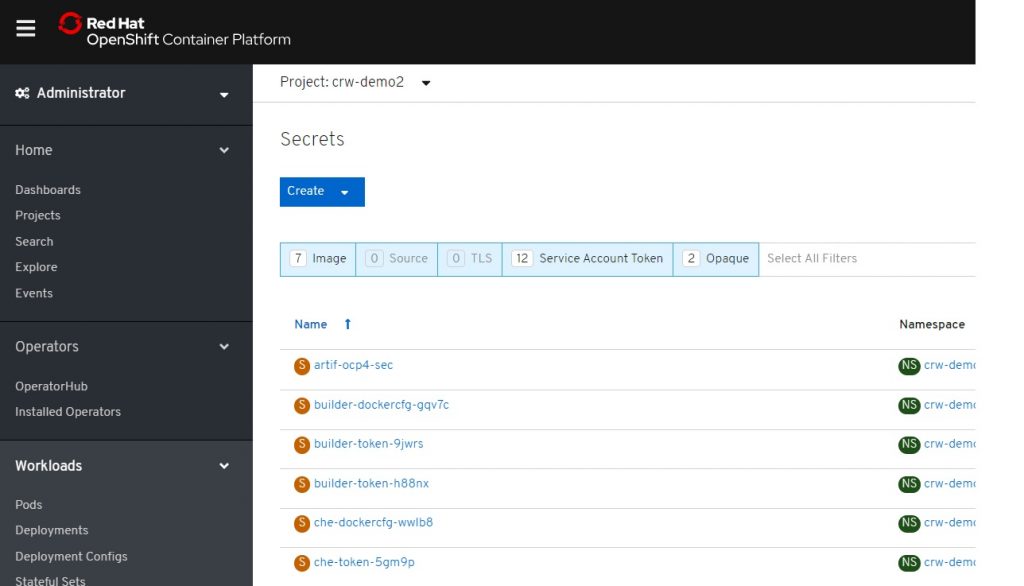 With that, you have now created an Openshift secret with the credentials necessary to pull the image from your private registry. You still need to link the OpenShift secret to your service accounts. Before I show you how to do that, you must install CodeReady Workspaces.