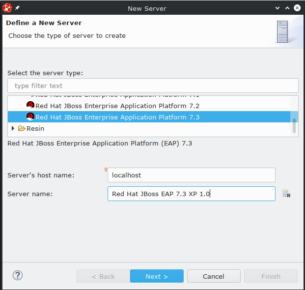 - Select server type Red Hat JBoss Enterprise Application Platform 7.3.