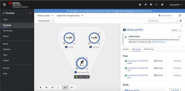 Application health checks were available in the OpenShift 3 web console, and we've received many requests to reinstate this feature on the application development side. In OpenShift 4.5, developers can once again use application health checks to proactively detect, handle, and mitigate certain situations.