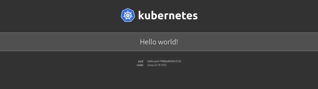 Figure 5: Home screen for the 'Hello, world' Kubernetes application.">