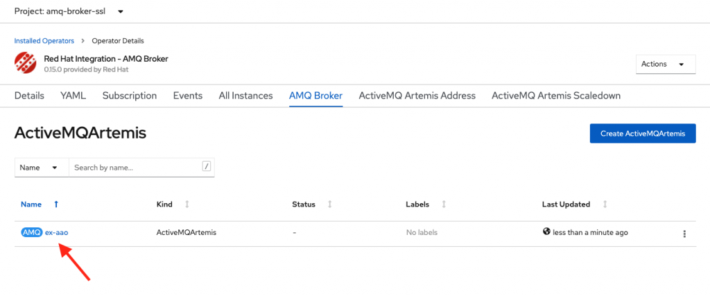 As shown in Figure 11, I specified the name of the secret as sslSecret: ex-aao-amqp-secret.