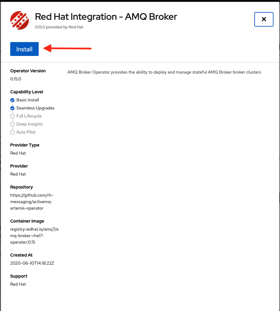 In this section, we install the AMQ Broker Operator from the OperatorHub into our OpenShift cluster. To install the Operator, you must have cluster-admin privileges for the OpenShift cluster.