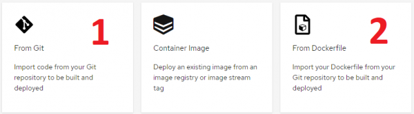 This option uses OpenShift's S2I technology to fetch your source code, build it, and deploy it as an image (running in a container) to OpenShift. This option does not require you to create the build configuration (meaning, a Dockerfile); you simply create the code and let OpenShift take care of the rest. You are obviously denied the flexibility of using a build configuration, but it is a fast and easy way to build an image. This approach might work well for a good portion of your needs. And if it works, why mess with it?