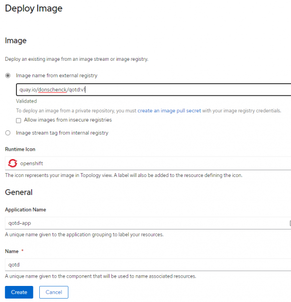 - Deploy the image to your OpenShift cluster using the Container Image option.