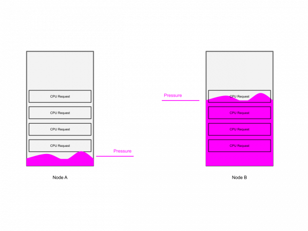 The descheduler is removing workloads from nodes, thus in this context we have to identify nodes where we are seeing a high resource shortage. By removing workloads we’d reduce this shortage and in turn improve workload performance.