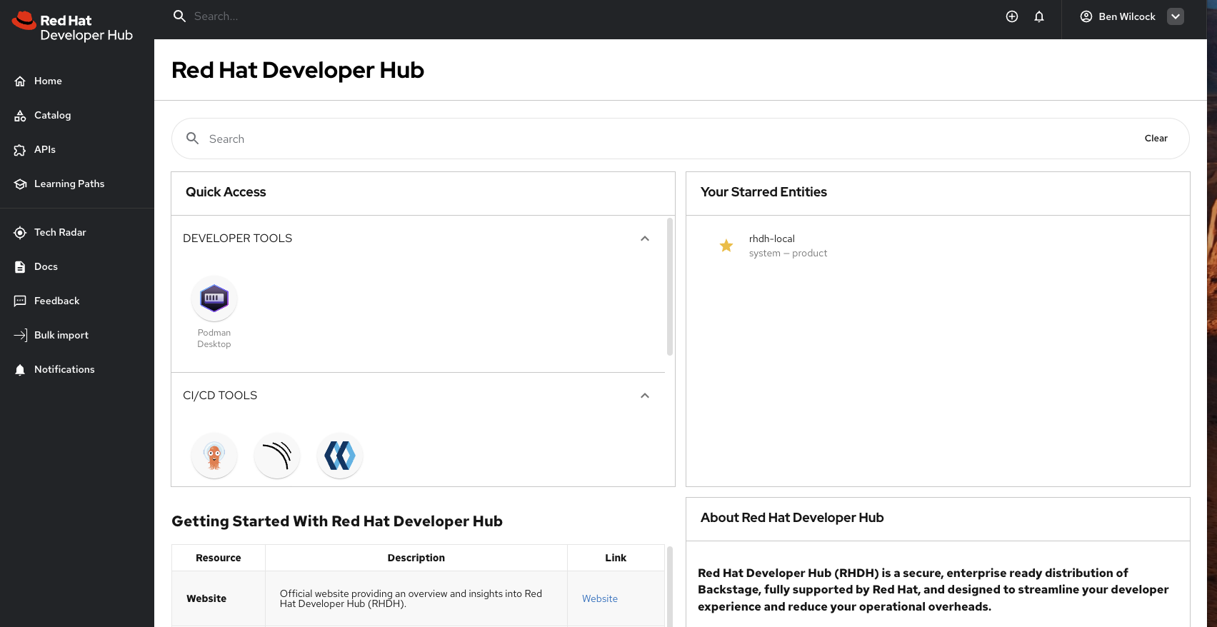 When writing and testing TechDocs, Templates, or Catalog items, RHDH Local offers a fast and simple solution that lets you work quickly and retain full control over your setup and your database.