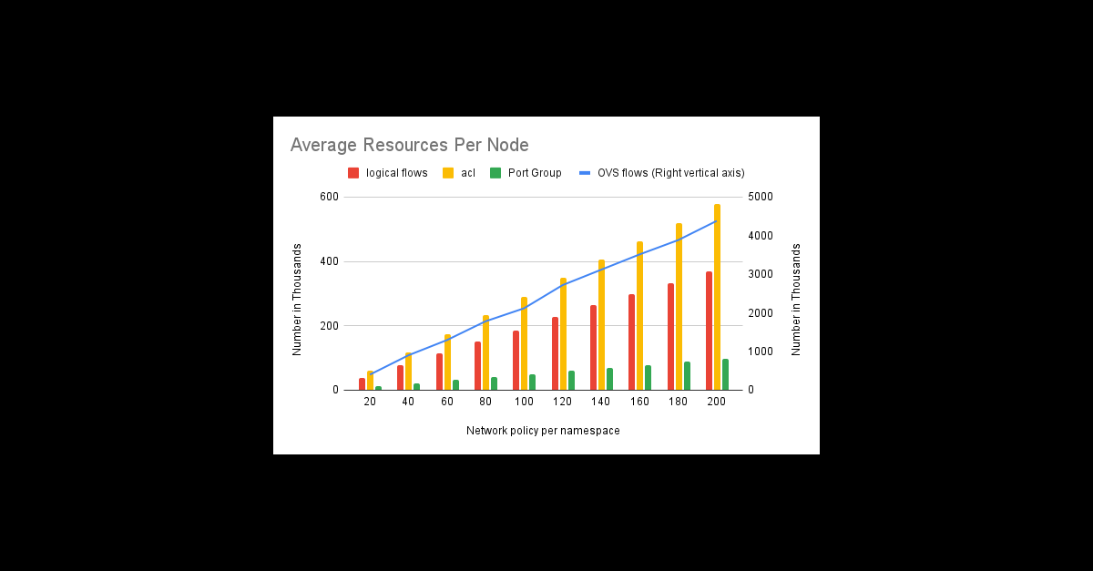 - Observed a proportional increase in OVS flows, logical flows, and ACLs with the increase in network policies.