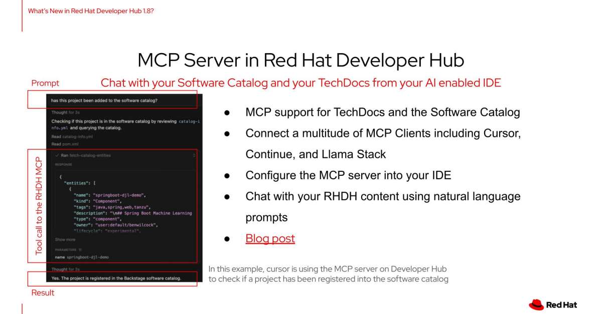 - [New] MCP Server in Red Hat Developer Hub for catalogs and techdocs (DP)