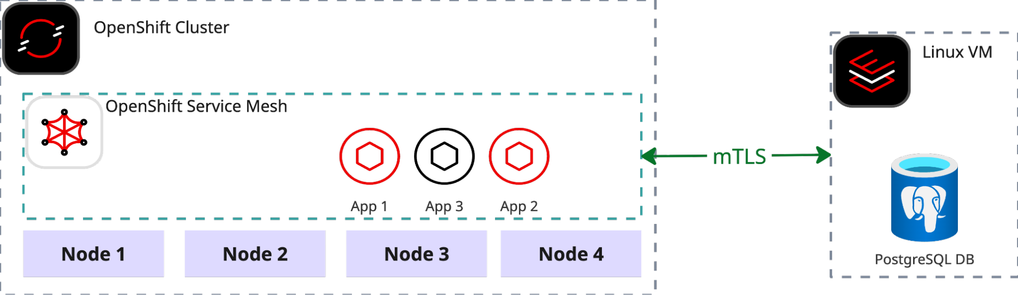 This tutorial will focus on a scenario involving a Linux server that hosts a legacy DB server. Let's say it will be PostgreSQL DB. The objective is to smoothly integrate the DB server with an application running within the mesh.