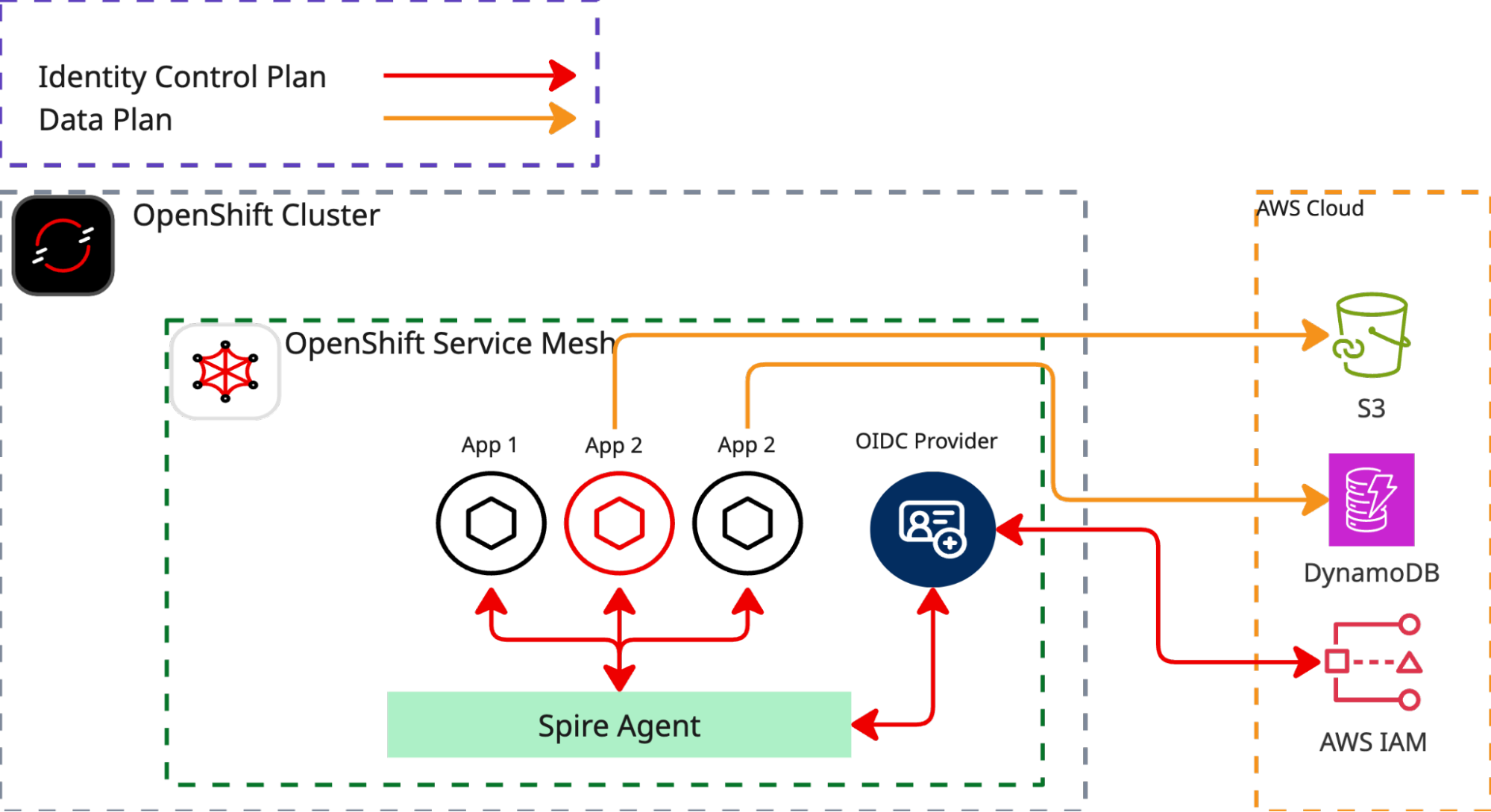 In part 1 of this series, we used Red Hat OpenShift Service Mesh and zero trust workload identity manager to protect communications within a cluster. This second part moves beyond the cluster boundaries to extend that trust to external infrastructure. You will learn how to integrate a Linux virtual machine and how to use Cloud Identity and Access Management (IAM) federation to access AWS services without static credentials. These tutorials show how to build a unified identity model across hybrid and multicloud environments.