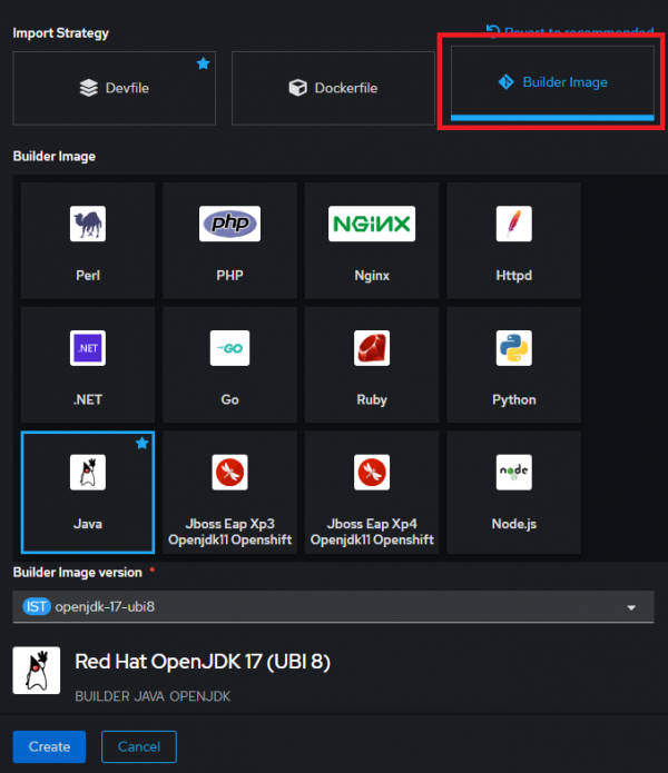 After selecting the Edit Import Strategy link, choose the Builder Image option (Figure 3).