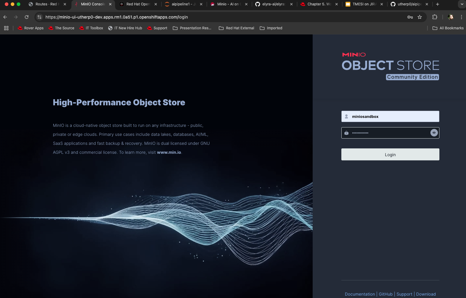 minio-ui routeaddress. You will get a login page that looks like Figure 1.