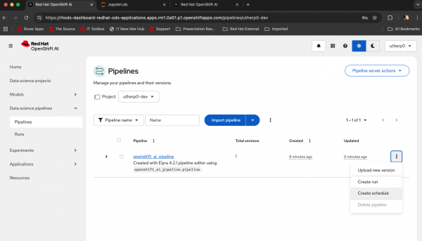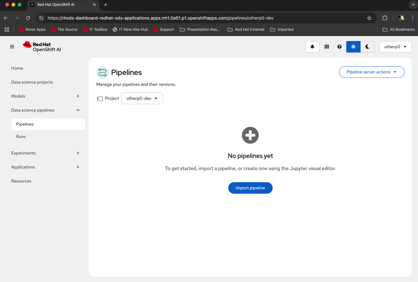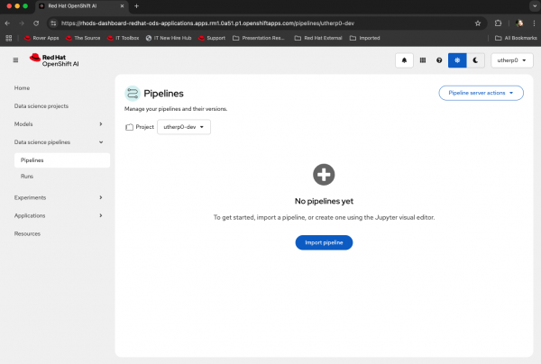 Return to the OpenShift AI Ux and click on the Pipelines navigation option.