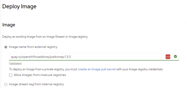 quay.io/openshiftroadshow/parksmap(Figure 6).