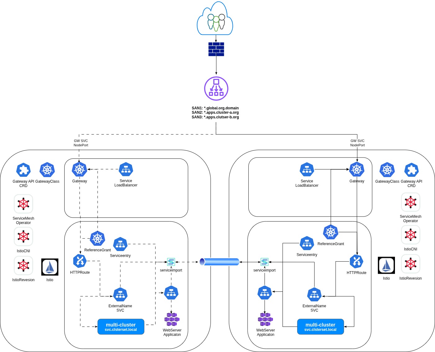 - Limitations of native ingress: Standard Kubernetes ingress controllers are single-cluster aware, excelling at intra-cluster load balancing but lacking built-in discovery or routing to remote clusters.