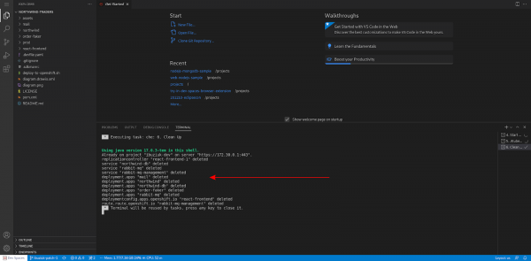 Terminal -> Run Task -> devfile -> 6. Clean Up.