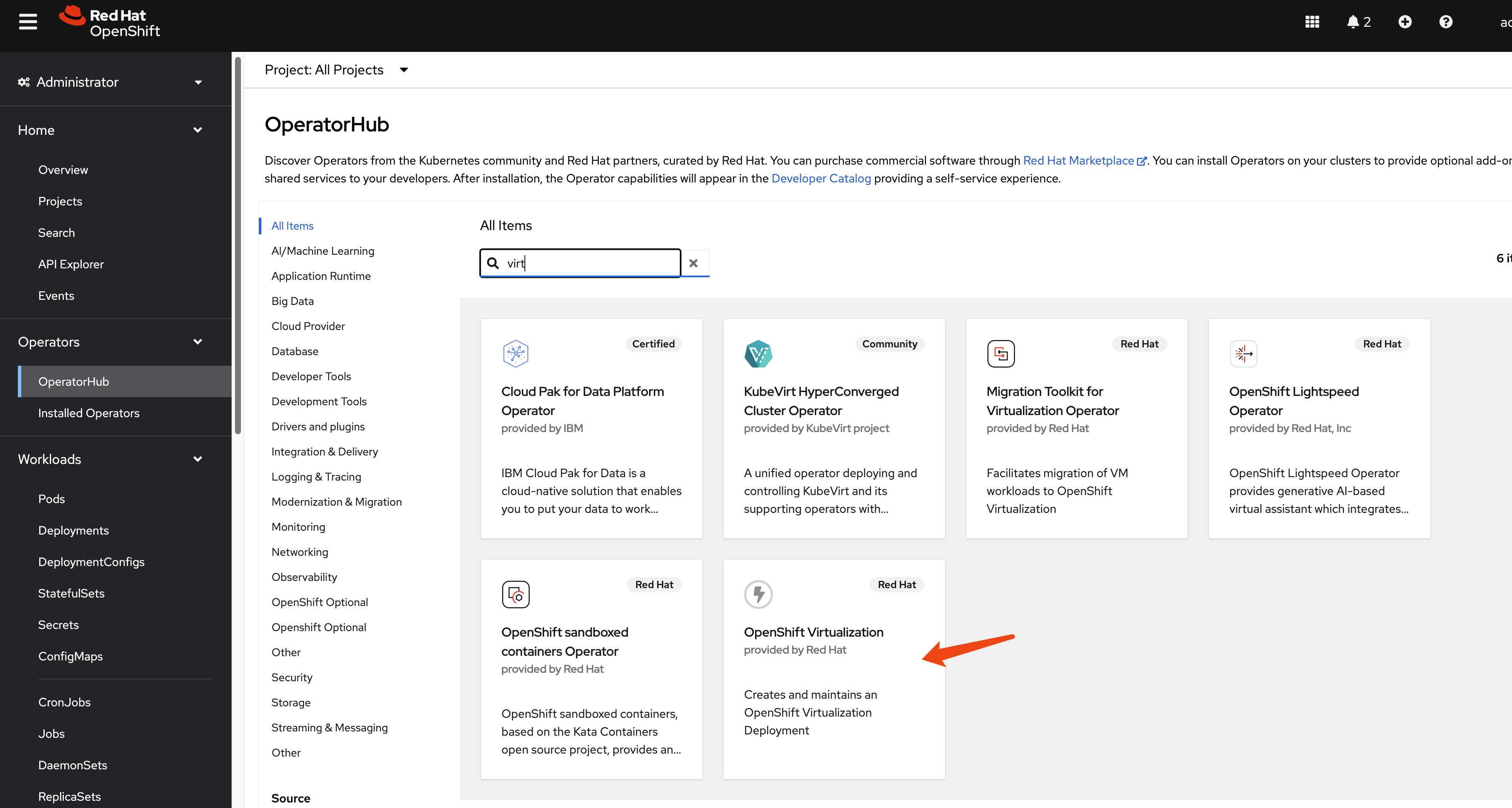 - Install Red Hat OpenShift Virtualization