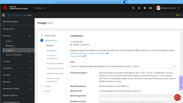 Now you know how to create a tailored compliance policy using the Red Hat Lightspeed compliance service and how to bake that policy into images built using Red Hat Lightspeed image builder.