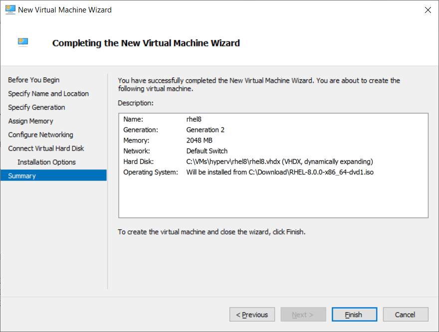 Click Finish to create the VM.
